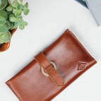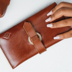 Hana Passport Wallet is from the timeless basic series. The closure is circled with an accessory made with upcycled sustainable horn.