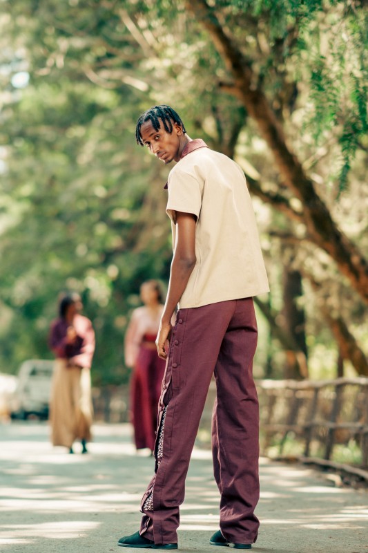 The shirt is made from machine made cotton, has a flap on the chest with a finished look when it is buttoned up.