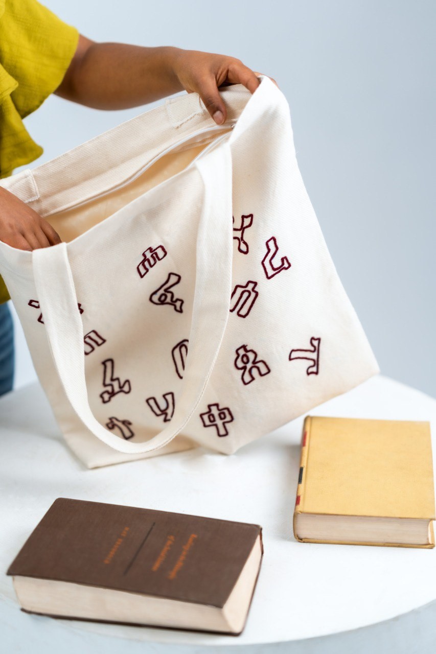 bag celebrates Ethiopia language and heritage. This bag honors Ethiopia’s Ge’ez alphabet,