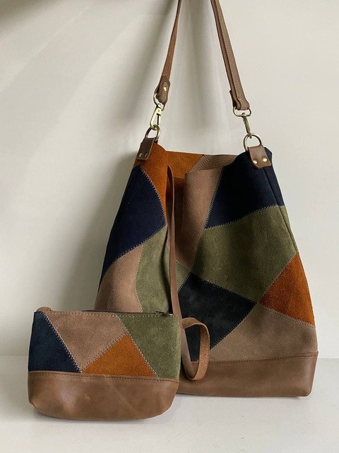 Upcycle suede leather tote bag