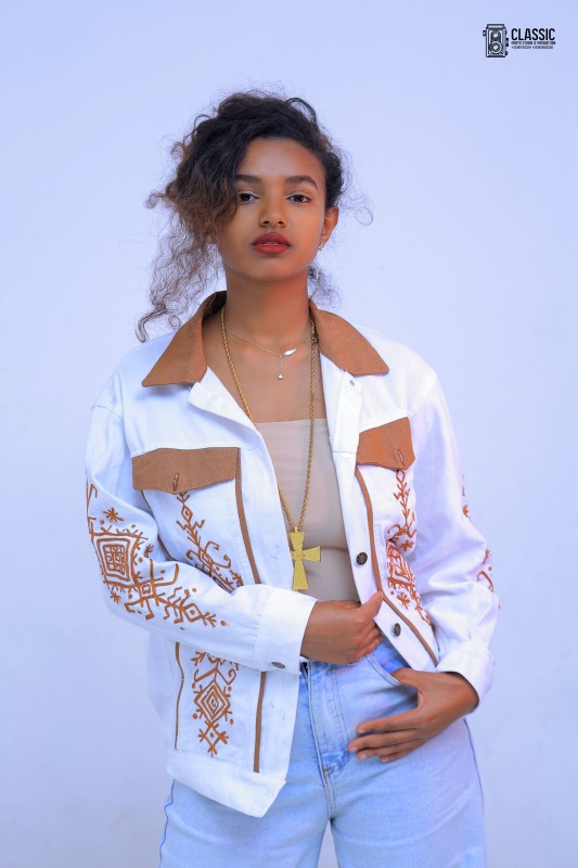Experience the pinnacle of Ethiopian luxury with a masterpiece that merges traditional artistry with modern high fashion tailoring. This signature jacket features intricate, hand-inspired geometric embroidery across the sleeves and chest, set against a premium crisp white canvas. Accented with sophisticated brown contrast collars and a structured silhouette, it’s designed for those who command attention through heritage and style.